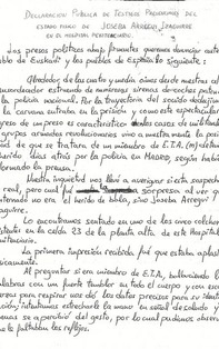 Documento original completo elaborado por los presos políticos testigos del estado de Joxe Arregi.